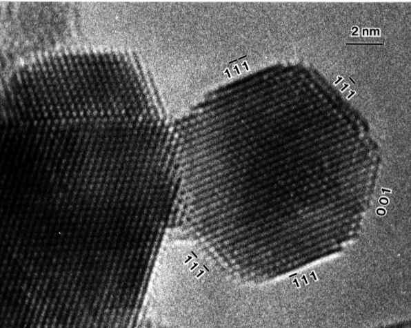 超微粒子であり、透過型電子顕微鏡で [110]方向から観察したものである。
