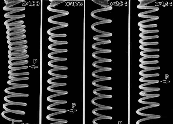 混合ガスからCVD法によって得られたアモルファス。(a)ずのバネ結晶の下端を