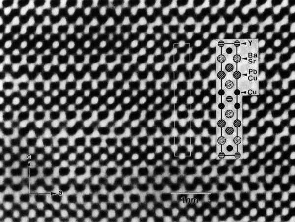 高分解能像中の黒丸の大きさ及び濃度より個々の金属原子が区別でき、X線回折では