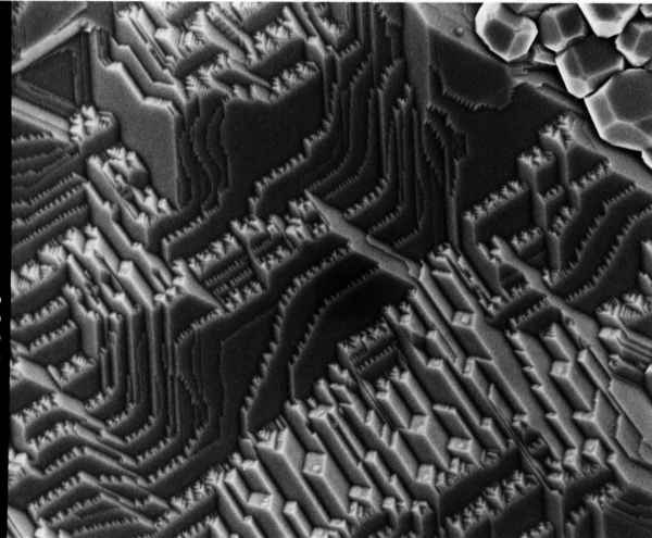 焼結体は、 BLコンデンサやバリスタに利用できる。はじめに写真のごとき少数の結晶核が発生し、 これらが異常粒成長をして気孔を持った焼結体となる。