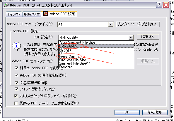 手順5 PDFオプションを「High Quality」もしくは「Press Quality」とし,「プリント」ボタンをクリックします.