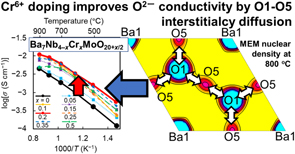 Improved oxide-ion and lower proton conduction of hexagonal perovskite-related oxides based on Ba7Nb4MoO20 by Cr6+ doping Yuichi Sakuda, James R. Hester, Masatomo Yashima, J. Ceram. Soc. Jpn. 130, 442 (2022). |